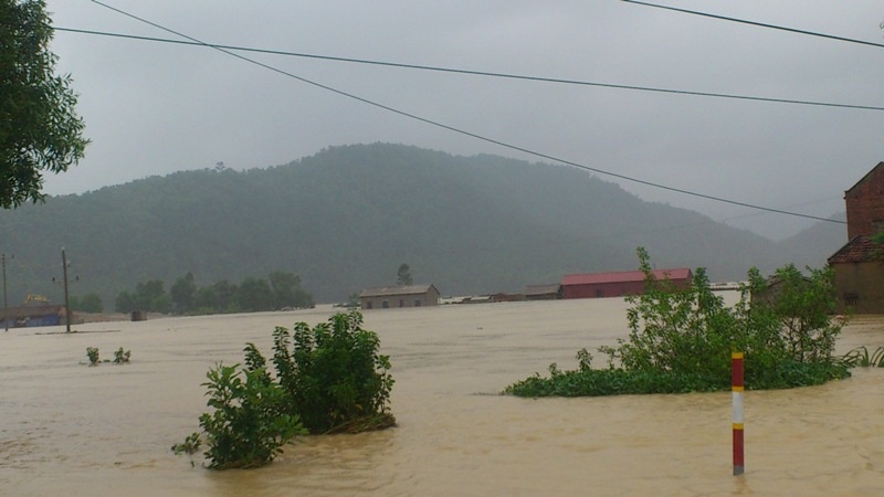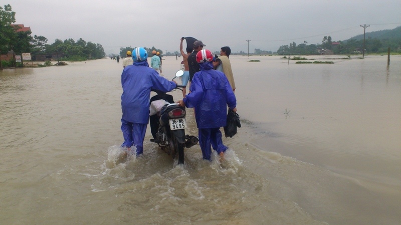 Mưa lũ cũng đã gập ngập trên địa bàn thị xã Hoàng Mai, Nghệ An sâu gần 1m. Quốc lộ 1A thuộc địa bàn huyện Tĩnh Gia, Thanh Hóa cũng bị ngập sâu trên 1m.