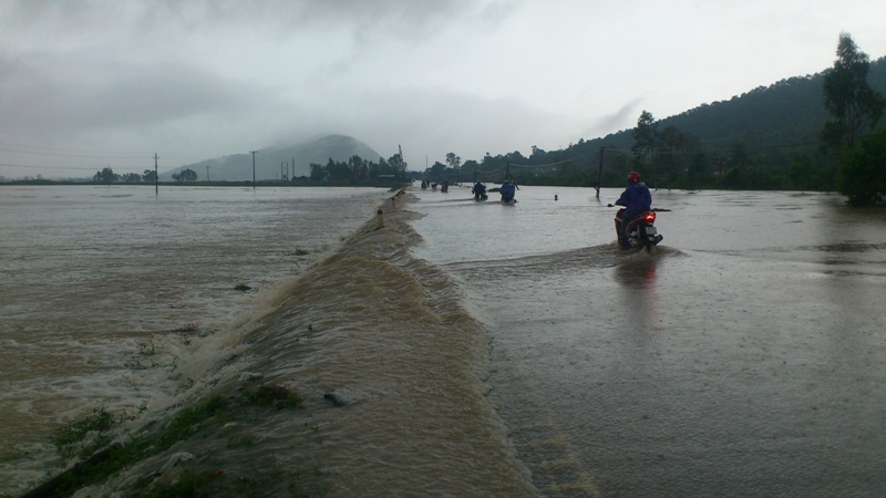 | Quốc lộ 1A ngập sâu, nước chảy rất xiết nên việc đi lại cần hết sức cẩn thận. |