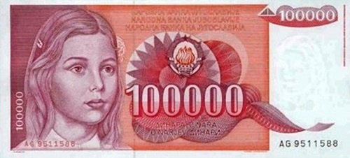 Tỷ lệ lạm phát: 65% Thời gian giá hàng hóa tăng gấp đôi: 34 giờ Sự sụp đổ của Liên bang Xô Viết đã dẫn tới sự suy giảm vai trò quốc tế của Nam Tư – quốc gia ban đầu là cầu mối chính trị và địa lí giữa phía Đông và Tây, sự lãnh đạo của Đảng Cộng sản cuối cùng đã phải chịu áp lực như Xô Viết đã làm. Việc này dẫn tới sự chia cắt Nam Tư thành một số quốc gia theo các dân tộc riêng rẽ, nhiều cuộc chiến tranh xảy ra trong những năm kế tiếp trở thành những thực thể chính trị mới phù hợp với nền độc lập của họ. Trong quá trình này, thương mại giữa các vùng Nam Tư cũ đã sụp đổ, theo sau đó là các sản phẩm công nghiệp. Đồng thời, một lệnh cấm vận quốc tế đã được áp dụng vào hàng hóa xuất khẩu của Nam Tư, điều này đã làm hủy hoại tất cả sản phẩm được sản xuất ra từ đất nước này. Petrovic, Bogetic và Vujosevic giải thích rằng thể chế Cộng hòa liên bang Nam Tư mới, trái ngược với các bang được tách ra như Serbia và Croatia - nơi còn giữ lại được bộ máy hành chính cồng kềnh như trước khi bị phân chia, đã góp phần gây ra thâm hụt ngân sách nhà nước. Trong nỗ lực để lưu thông dòng tiền và đối phó với các sự thiếu hụt khác, ngân hàng trung ương đã mất kiểm soát trong việc in ấn tiền, đó là lí do gây ra tình trạng siêu lạm phát. |