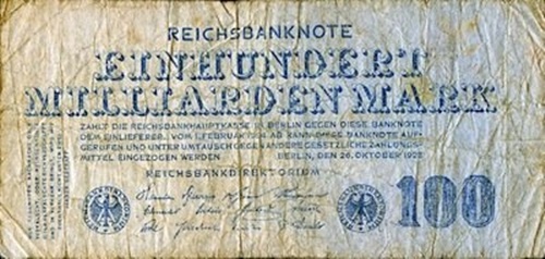 Tỷ lệ lạm phát: 21% Thời gian giá hàng hóa tăng gấp đôi: 3 ngày, 17 giờ Siêu lạm phát đã diễn ra ở Weimar, Đức vào đầu những năm 1920. Kết quả Đức đã bị yêu cầu phải trả khoản bồi thường lớn cho bên thắng cuộc để bù đắp những chi phí phát sinh trong cuộc chiến. Tuy nhiên, Đức không được phép trả khoản bồi thường chiến tranh bằng đồng tiền hiện tại, tờ Papiermark đã trở nên suy yếu đáng kể trong suốt cuộc chiến tranh vì khoản tiền thức tế Đức cung cấp cho cuộc chiến tranh của nước này hoàn toàn thông qua vốn vay. Để trả khoản bồi thường chiến tranh bằng loại tiền khác với tờ Papiermark, Weimar - Đức đã buộc phải bán lượng lớn Mark để đổi lấy ngoại tệ, thứ đủ điều kiện để thanh toán. Khi các khoản thanh toán hết hạn vào mùa hè năm 1921, chính phủ đã phải bán tiền mark để đổi lấy ngoại tệ với bất cứ giá nào, điều này nhanh chóng khiến đất nước đối mặt với siêu lạm phát vì tiền mark đã bị quá mất giá. |