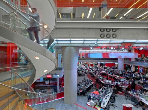 Trụ sở của BBC - một trong những hãng thông tấn lớn nhất thế giới tại London, Anh - có sức chứa lên tới 6.000 nhân viên. Văn phòng này có tên trong danh sách những trụ sở đẹp nhất toàn thế giới. |