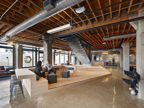 Trụ sở của hãng phần mềm Autodesk tại San Fancisco, Mỹ được thiết kế rất đa năng. Cùng một không gian, đây vừa là nơi làm việc của nhân viên, vừa là phòng thí nghiệm, xưởng máy móc. |
