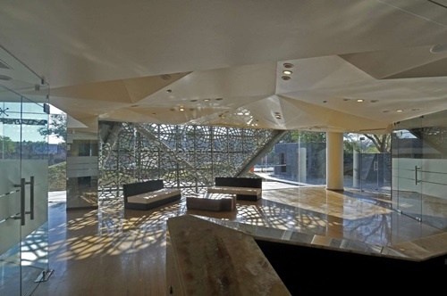Tòa nhà 72 màn hình tại Ấn Độ được bao bọc bằng những bức tường bê tông cách điệu. Thiết kế này vừa đẹp mắt, lại làm dịu đi ánh nắng do đặc thù thời tiết của nước này. |