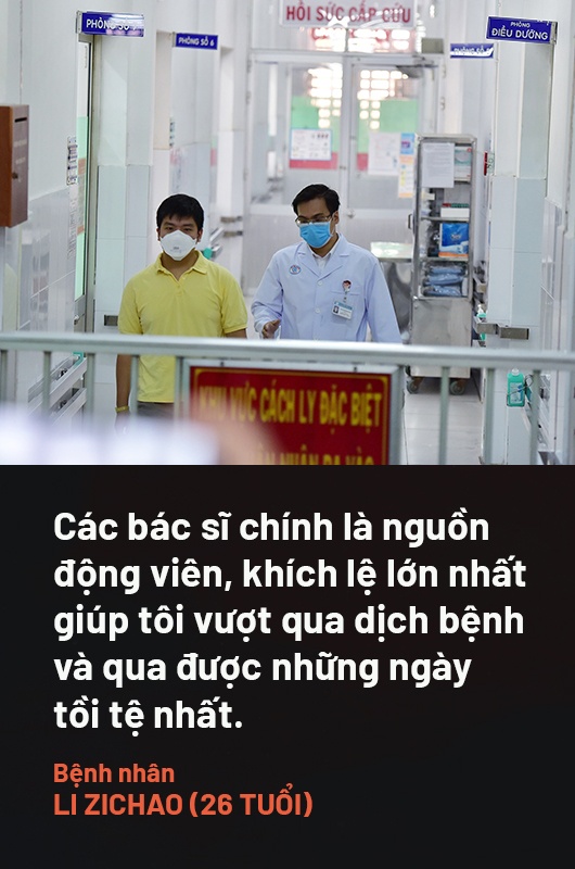 Bệnh nhân Li Zichao - một trong hai ca nhiễm đầu tiên tại Việt Nam, chia sẻ về những ngày đáng nhớ khi được các y tá, bác sĩ Bệnh viện Chợ Rẫy điều trị. Lần đầu tiên vào viện mà anh không nhìn thấy mặt bác sĩ bởi tất cả mặc đồ bảo hộ kín mít, nhưng ngày qua ngày, anh quen thuộc với từng giọng nói, ánh mắt và phân biệt được từng người.