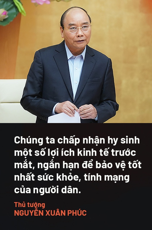 Quan điểm xuyên suốt được người đứng đầu Chính phủ nhắc đến là đưa sức khỏe người dân lên ưu tiên hàng đầu. “Chúng ta chấp nhận hy sinh một số lợi ích kinh tế trước mắt, ngắn hạn để bảo vệ tốt nhất sức khỏe, tính mạng của người dân”, Thủ tướng nhắc quan điểm này ở hầu hết cuộc họp Thường trực Chính phủ.