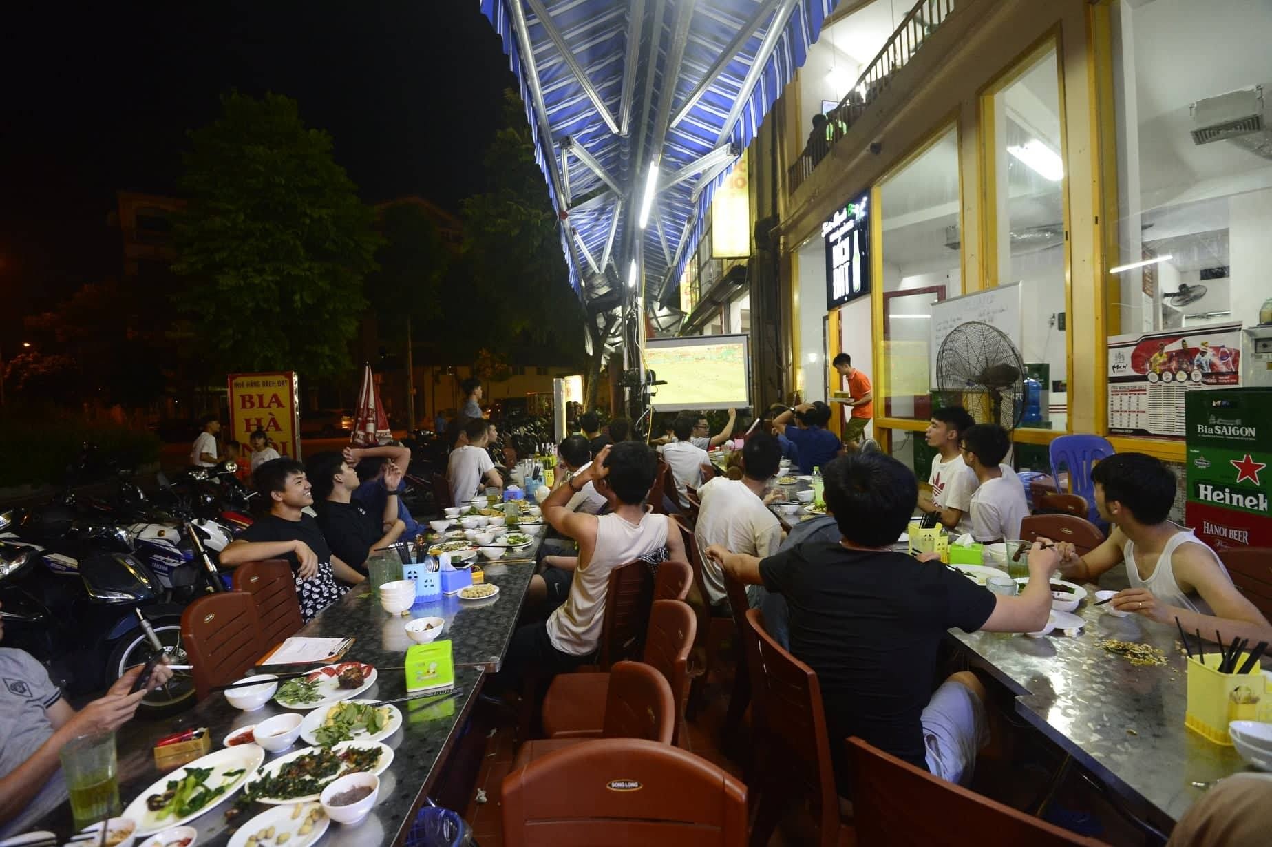 | Do thi đấu sớm, nhiều quán nhậu cũng đông giới mày râu đến uống bia, thưởng thức đồ ăn và đón xem trận cầu kịch tính nhất kể từ đầu giải. |