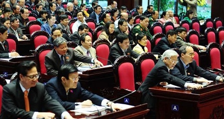 | Thời khắc lịch sử Quốc hội khóa 13 ấn nút thông qua Hiến pháp sửa đổi. |