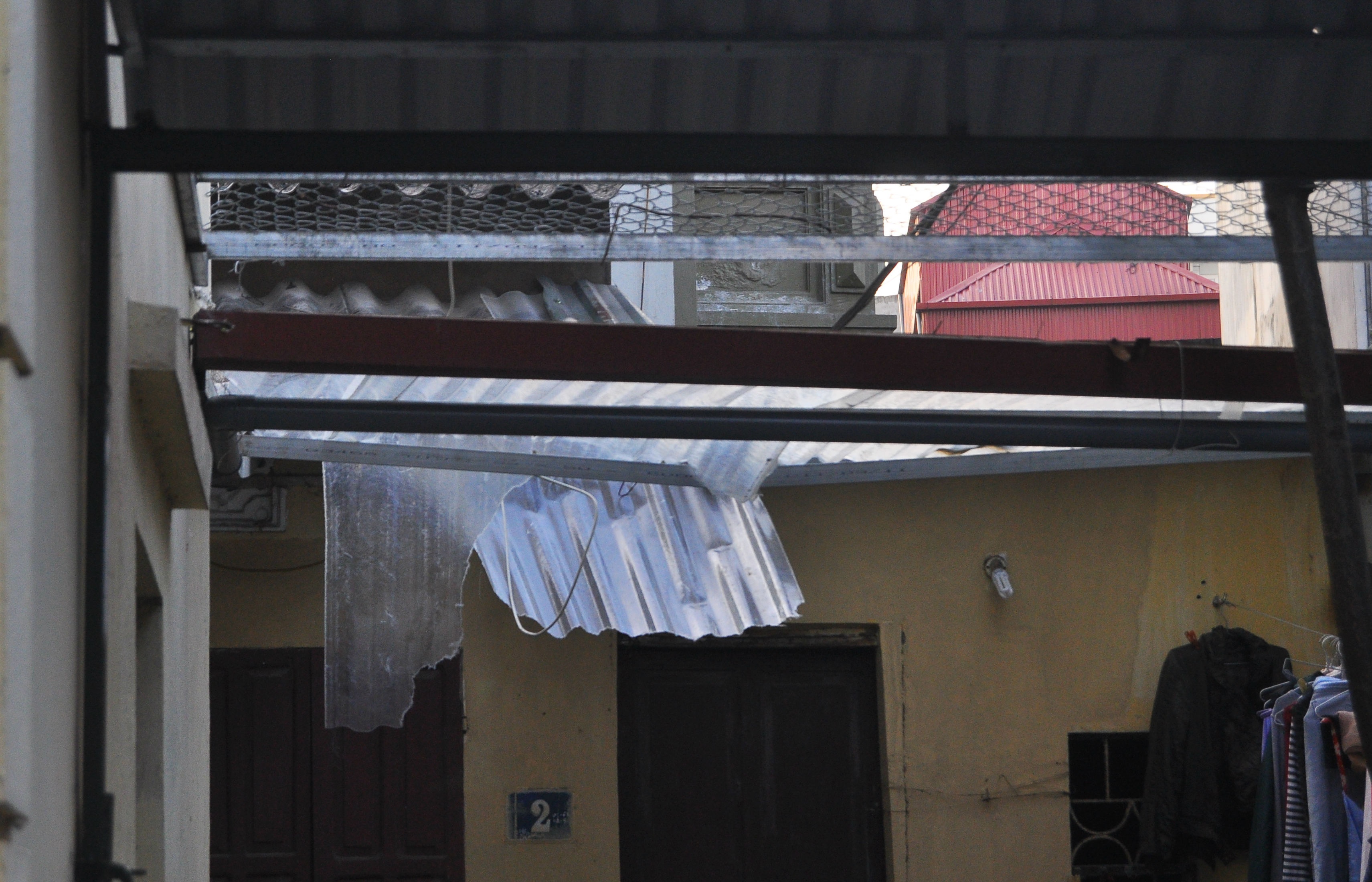 Sau 18 giờ cố thủ, nam thanh niên quyết định nhảy lầu xuống đất nhưng không trúng lưới, phao hơi. Anh ta rơi trúng, xuyên thủng mái tôn tầng một ngôi nhà kế bên và bị thương vùng đầu, chân tay. |