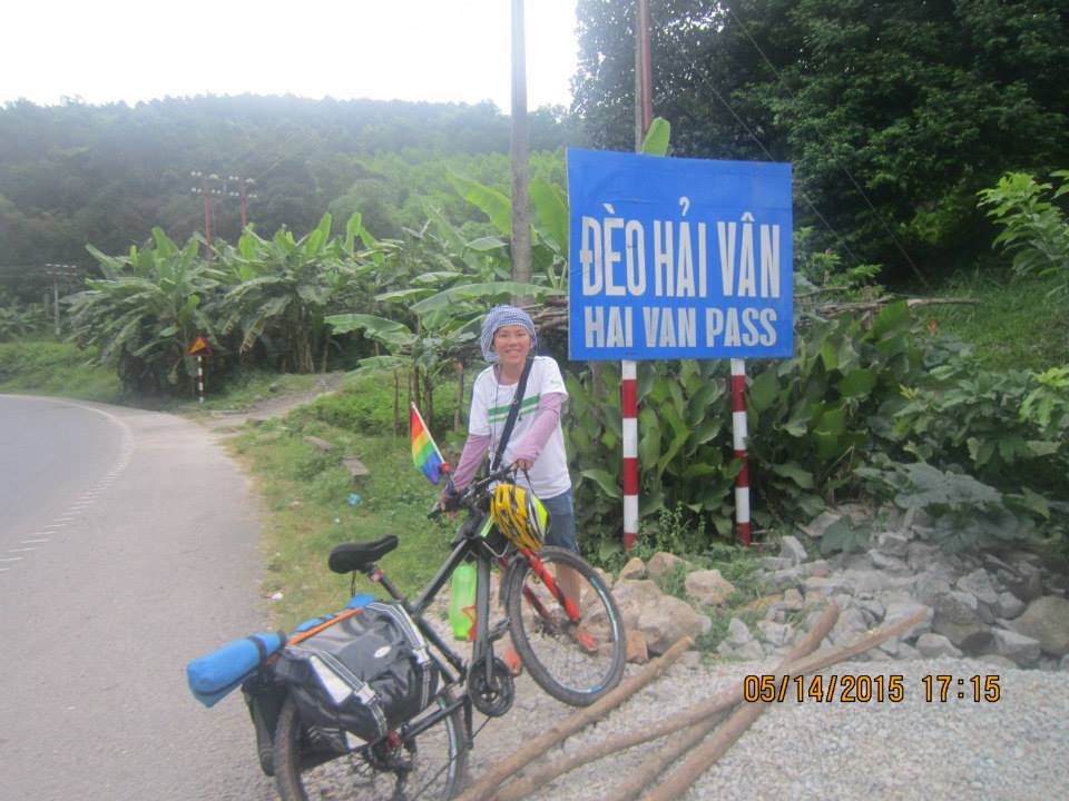 "Gần đến đỉnh đèo, tôi chỉ biết nằm xuống, nhìn lên trời vì quá đuối sức. Tuy nhiên, khi tới nơi, trời đã tối nên tôi không dám đổ đèo vì nguy hiểm. May mắn là có bạn bè ở Đà Nẵng chở tôi về thành phố" - cô kể.