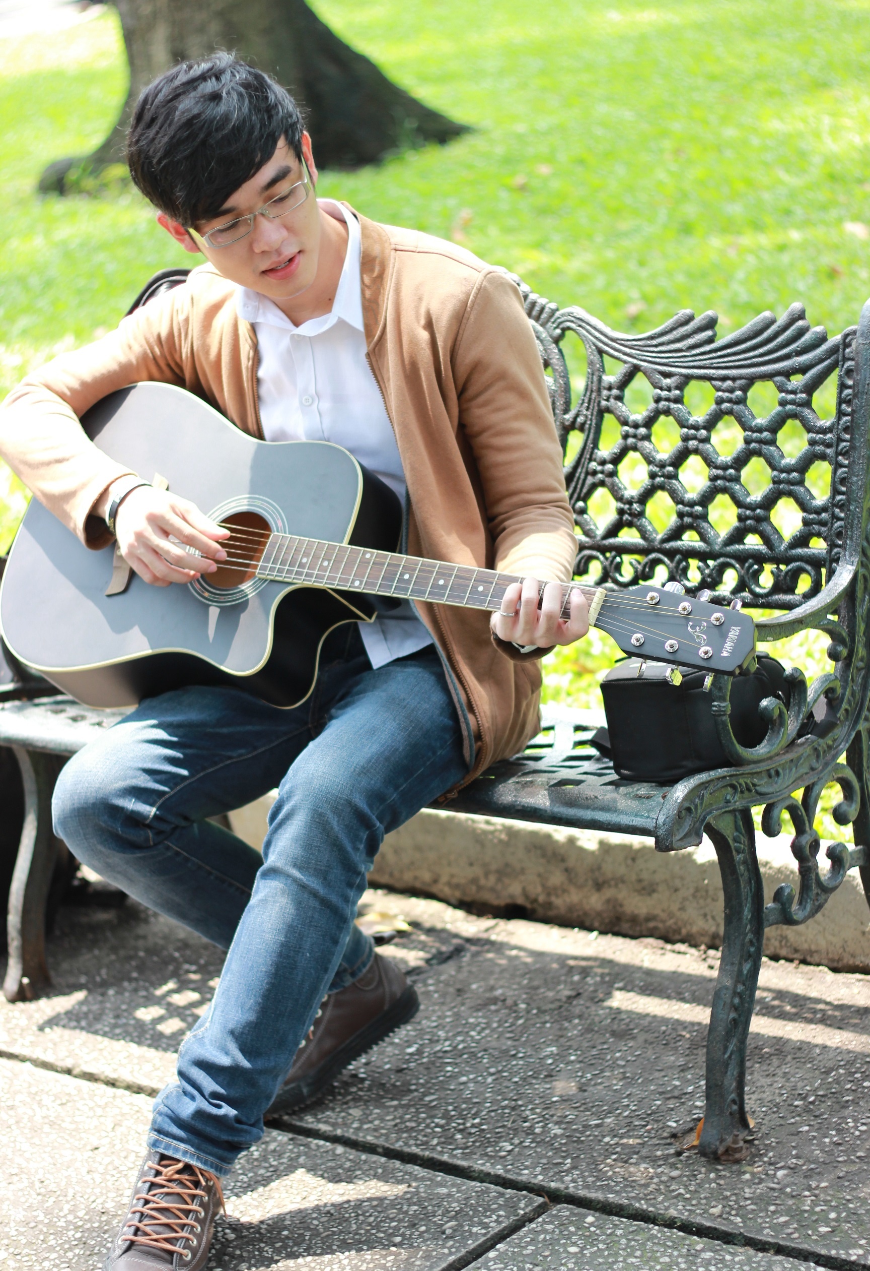 | Vẻ ngoài thư sinh của Tuấn Anh. Ngoài tiếng Anh, chàng trai còn thích chơi guitar và điện tử. |