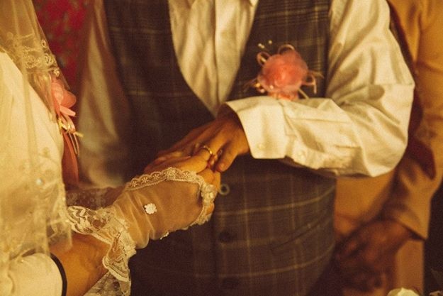 | Trang phục của cô dâu chú rể trong bộ ảnh được các bạn trẻ mượn từ bố mẹ, ông bà. |