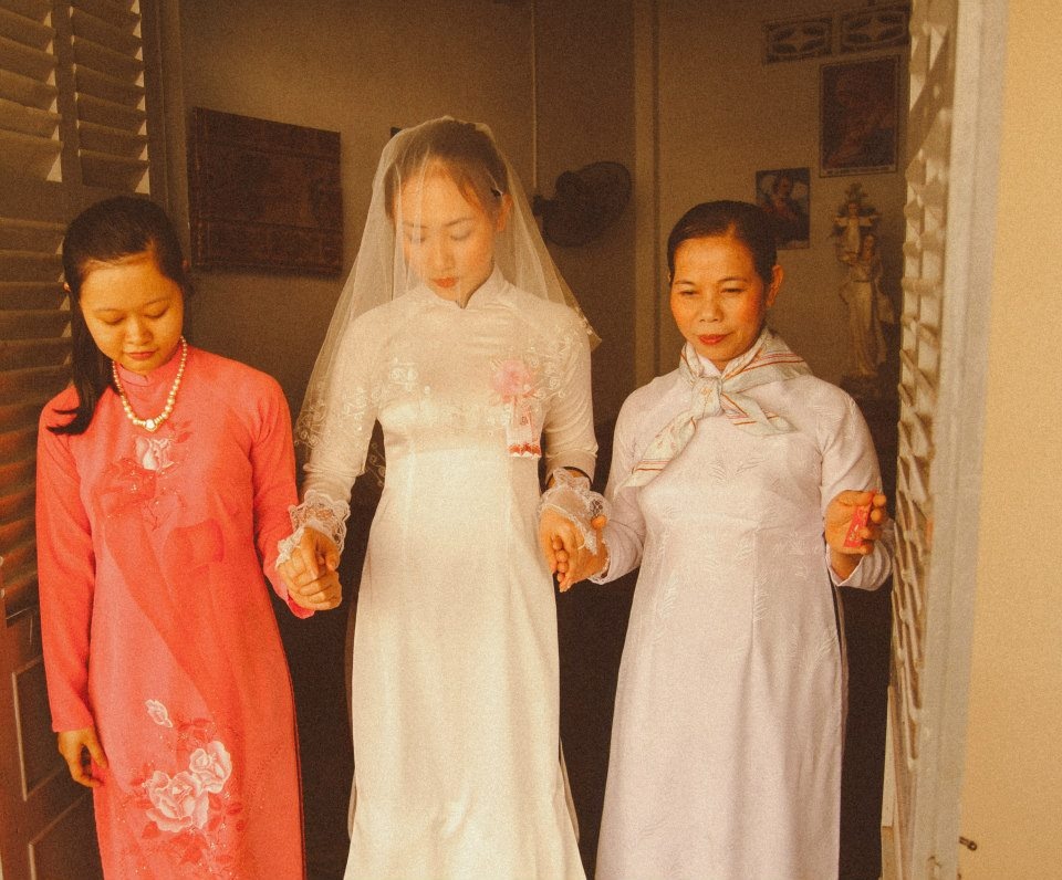 Hình ảnh nhà trai đi rước dâu. Bộ ảnh đặc biệt mang tên Cưới sum vầy, được nhiếp ảnh Nguyễn Trúc Lâm (Lamtom) và trưởng nhóm Bếp sẻ chia - Phạm Tâm Tuấn Khương lên ý tưởng thực hiện, đã trở thành món quà tinh thần ý nghĩa với những cụ bà đang sống tại Mái ấm Thiên Ân (phường Tam Phú, quận Thủ Đức) dịp cuối năm.