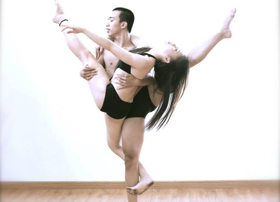| Anh và kiện tướng dance sport Khánh Thi. |