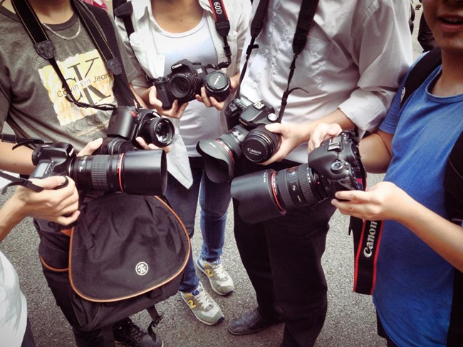 | Sở hữu những chiếc máy ảnh loại trung, nhiều “phó nháy” có thể hái ra tiền nhờ các dịch vụ chụp ảnh ăn theo. Ảnh: Phương Nhung. |