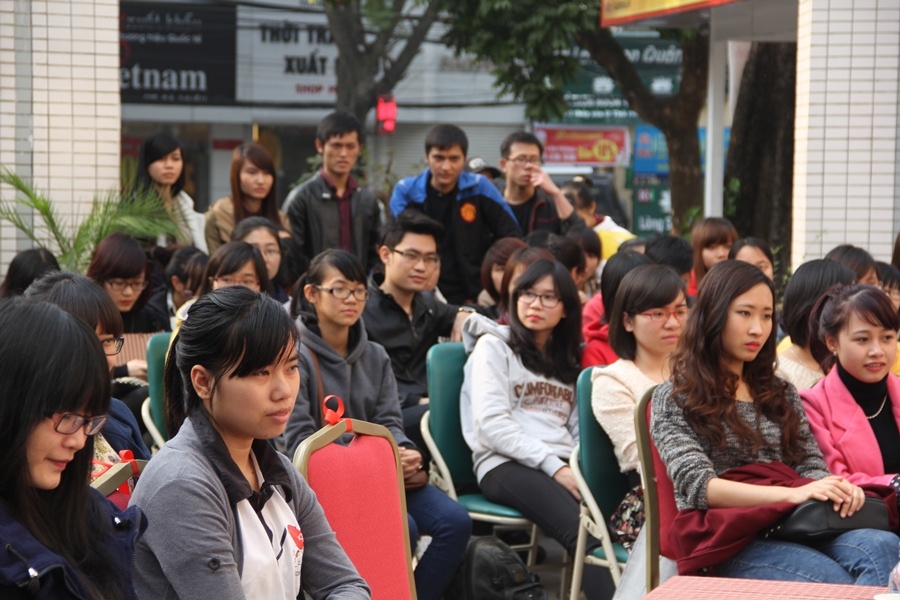 | Đông đảo bạn trẻ đến tham dự buổi ra mắt sách. |