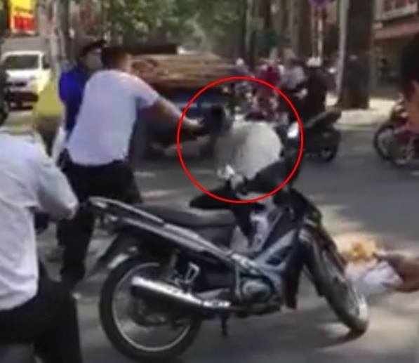 Clip ghi lại cảnh một tài xế taxi dùng mũ bảo hiểm đánh liên tiếp vào người đàn ông lái xe ôm lớn tuổi gây bức xúc. Sự việc xảy ra tại vòng xoay Nguyễn Chí Thanh - Ngô Gia Tự (quận 5, TP HCM). Nguyên nhân vụ ẩu đả do sự cố va quẹt trên đường, đôi bên xảy ra cãi vã. Khi tài xế bỏ đi, người dân xung quanh đã dùng xe máy chặn lại và chờ cơ quan chức năng đến giải quyết. Tại một diễn đàn, clip này hút hơn 22.000 lượt xem. Ảnh cắt từ clip.