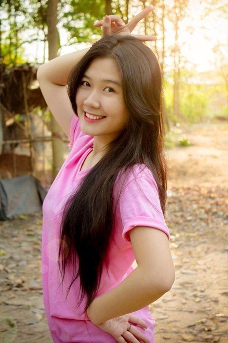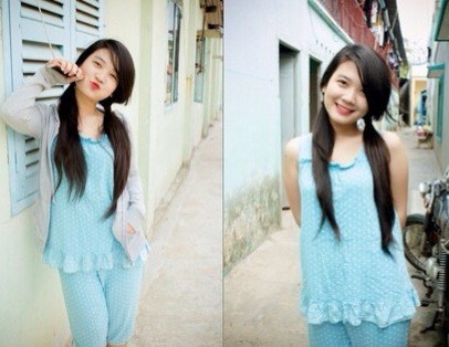 | Càng giản dị, vẻ đẹp trong sáng của Vân Anh càng toát lên. |