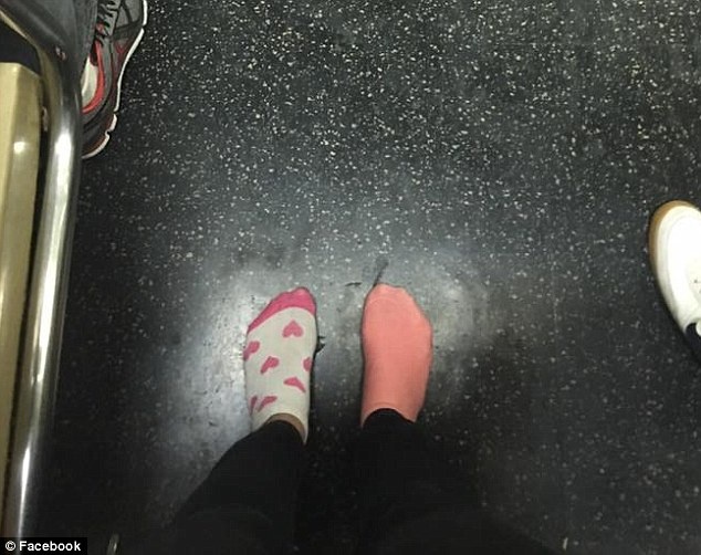 | Kay phải đi bộ 15 phút trong với đôi tất lệch. |