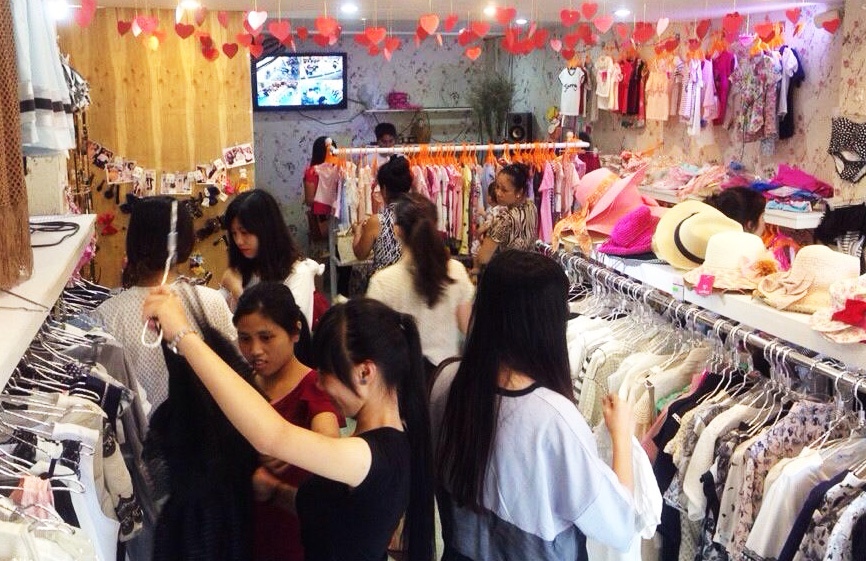 | Cửa hàng của Vân tương đối đông khách. Ngoài bán lẻ, cô còn đổ buôn cho nhiều shop ở Hà Nội. Ảnh: Ngọc Lan. |