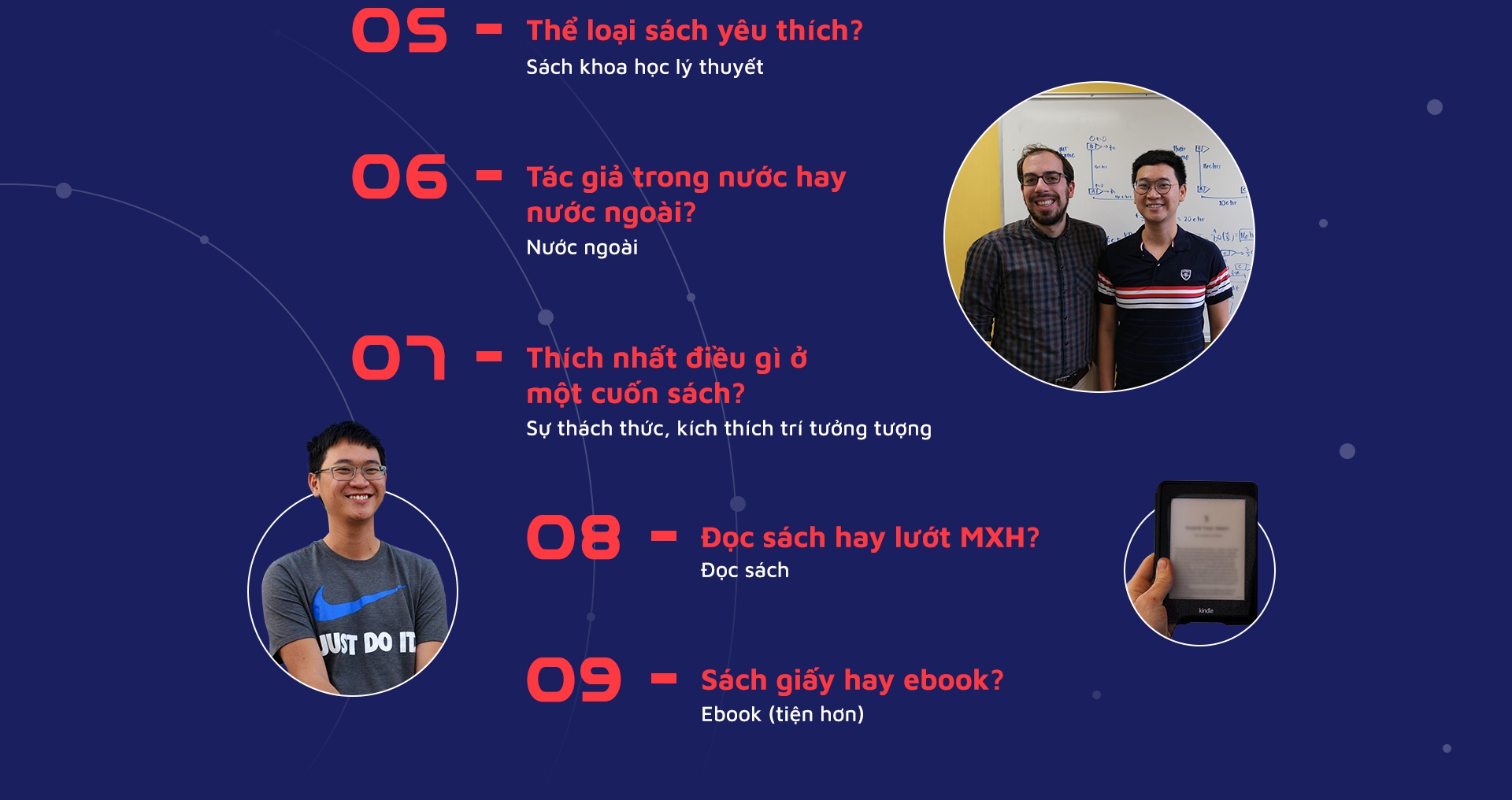 Nguyễn Hoàng Ngân cho biết anh thường đọc sách để mở rộng kiến thức cho công việc và học tập. Bên cạnh các sách chuyên ngành, 9X còn thích đọc thể loại tư duy trừu tượng.