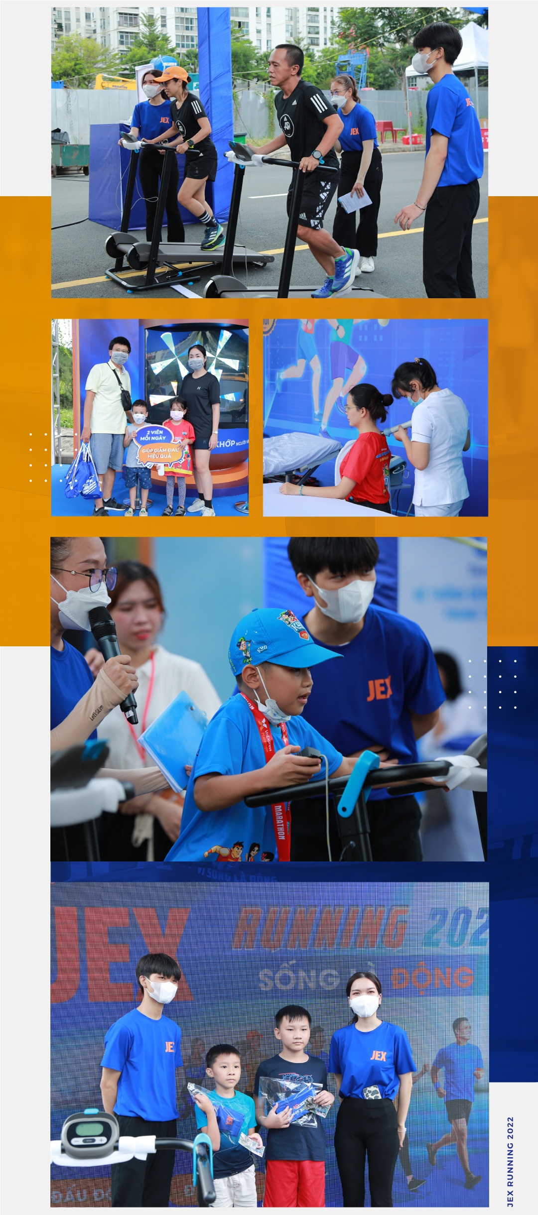 Bên cạnh trải nghiệm bên gia đình, người tham gia Jex Running 2022 ấn tượng với cách tổ chức bài bản, chuyên nghiệp. Jex thế hệ mới tổ chức lượng giá sức khỏe cơ xương khớp trước cho người tham gia, triển khai hội thảo tư vấn dinh dưỡng, chế độ tập luyện và cách phòng tránh vấn đề xương khớp tại các buổi workshop. Nhãn hàng còn trang bị nhiều loại máy điều trị căng cơ, thư giãn sau giải chạy.