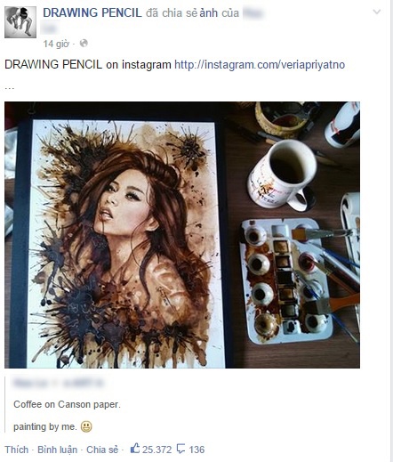 Ngày 25/12 trên một diễn đàn vẽ nước ngoài mang tên Drawing Pencil với hơn 3 triệu thành viên, đã chia sẻ 1 bức chân dung vẽ nữ ca sĩ Hoàng Thùy Linh (SN 1988) bằng chất liệu màu cà phê. Với phong các thể hiện sống động và phá cách, bức tranh nhận được hơn 25.000 lượt like (thích), cùng hàng trăm bình luận khen ngợi của cộng đồng mạng quốc tế.