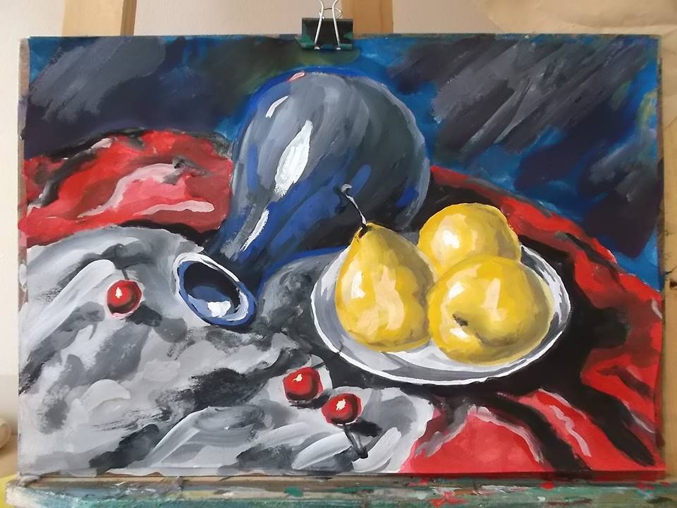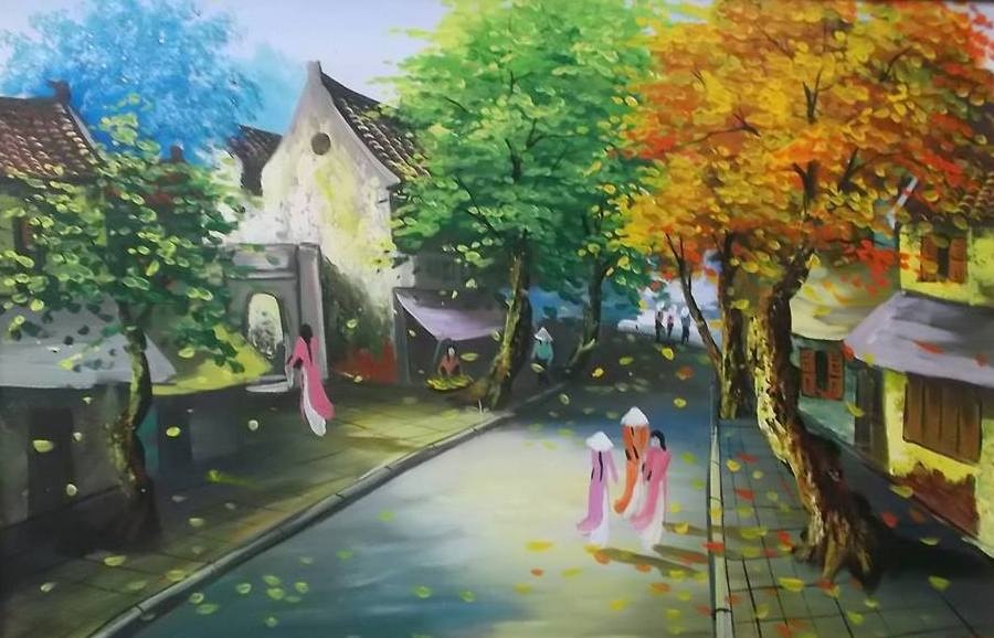 | Tác phẩm sơn dầu của Toản không thua kém hoạ sĩ chuyên nghiệp. |