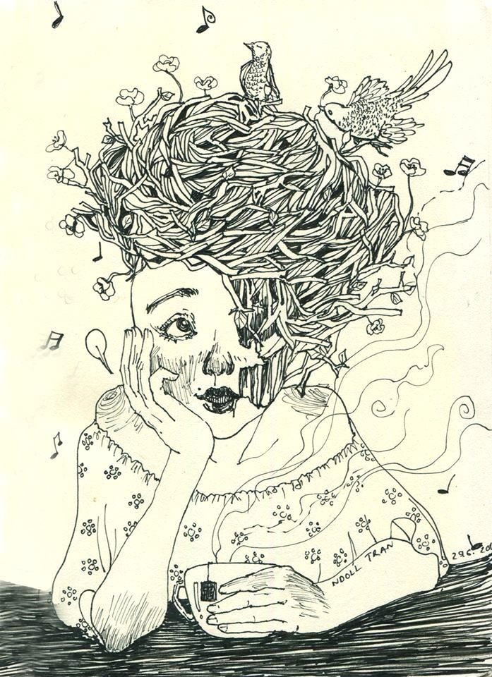 | Những tấm hình Hương vẽ thường gợi nét buồn xa xăm. Bởi cô luôn muốn người xem có cái nhìn đa chiều để từ đó khơi gợi tính tò mò và óc suy nghĩ mỗi khi quan sát tác phẩm. |