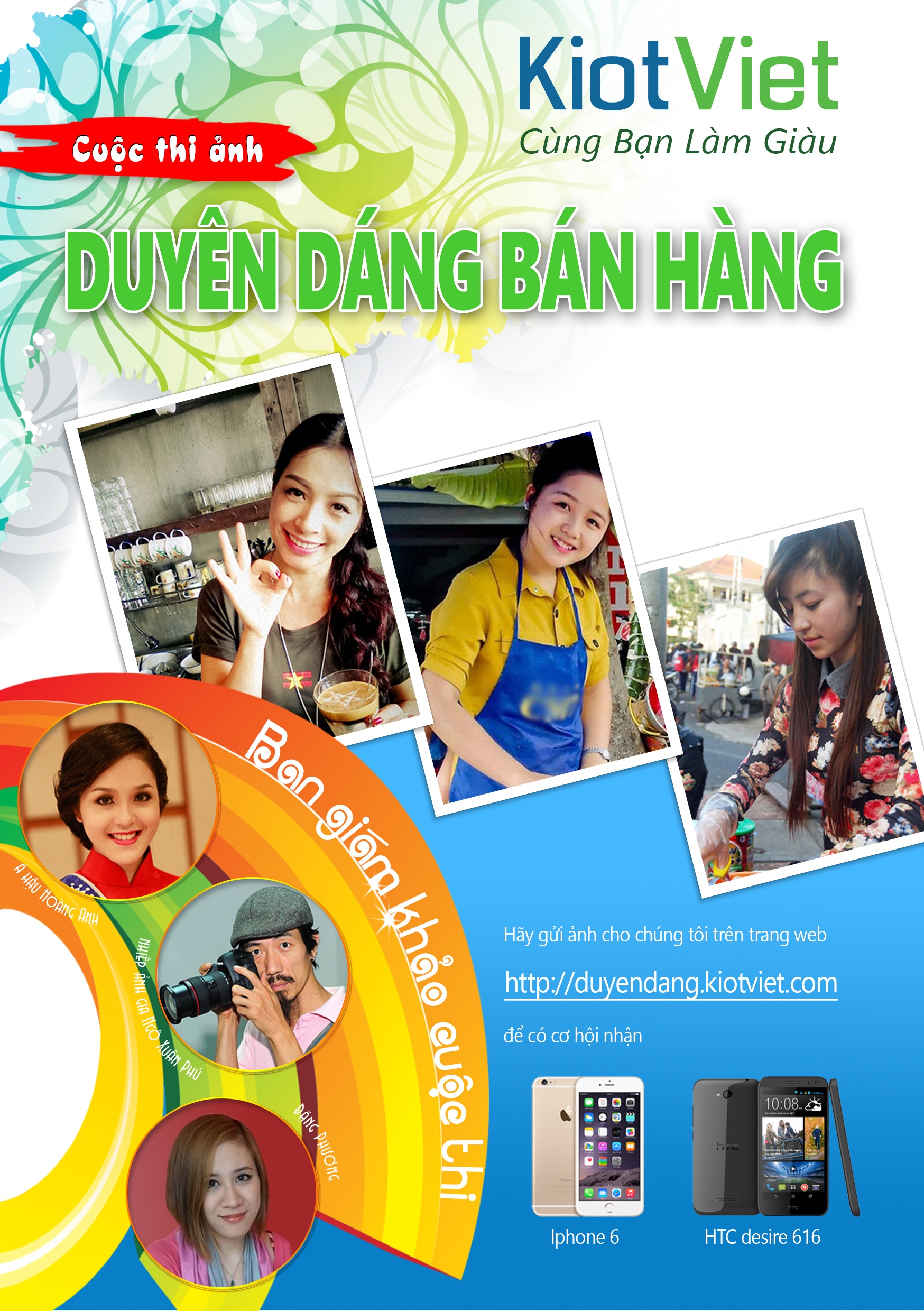 Cuộc thi Duyên dáng bán hàng diễn ra từ ngày 17/11. Người tham gia gửi ảnh dự thi trên website chương trình, ảnh được chụp trong quá trình bán hàng tại cửa hàng, bằng điện thoại hoặc máy ảnh đều hợp lệ. Những ảnh đạt giải nhất tuần là ảnh có số lượng like, share nhiều nhất trong tuần và nằm trong top 10 ảnh hot của tuần, ảnh đạt giải nhất tuần sẽ nhận được 1 điện thoại HTC desire 616 trị giá 5,5 triệu đồng. Chương trình sẽ trao 2 giải ảnh đạt giải đẹp nhất bao gồm: ảnh do cộng đồng mạng bình chọn và ảnh do Ban giám khảo cuộc thi bình chọn với phần thưởng là điện thoại iPhone 6 trị giá 18 triệu đồng. Ngoài ra, rất nhiều phần quà thú vị và hấp dẫn khác dành cho những người tham dự.