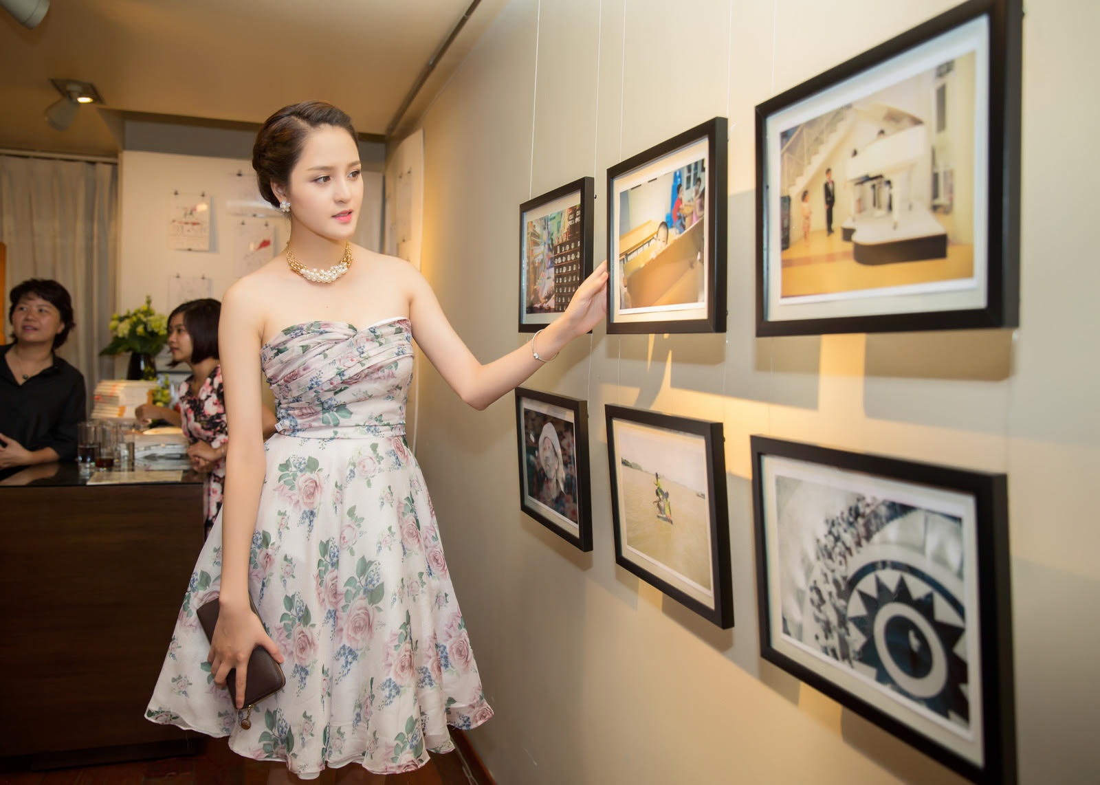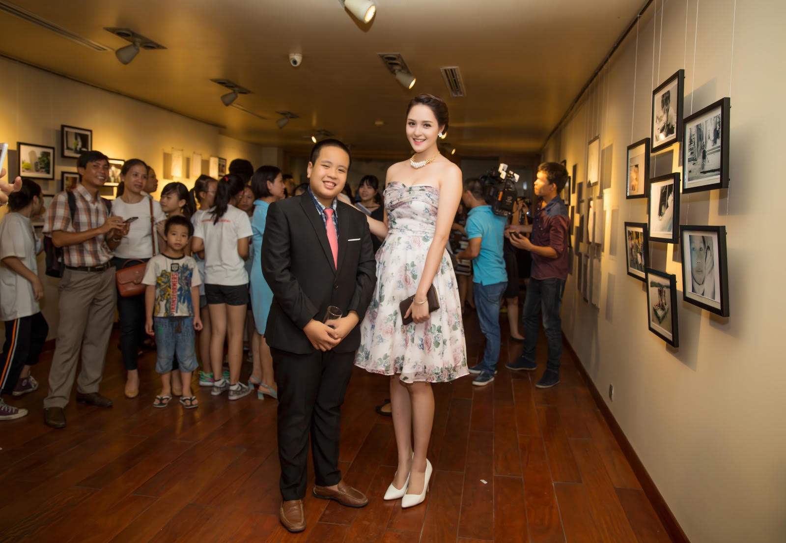 | Tối 25/8, á hậu Hoàng Anh là khách mời đặc biệt trong buổi khai trương triển lãm tranh và ảnh mang tên Tôi có bạn của thần đồng Đỗ Nhật Nam và người được mệnh danh là "Picasso của Việt Nam" - Vũ Tuấn Kiệt. |