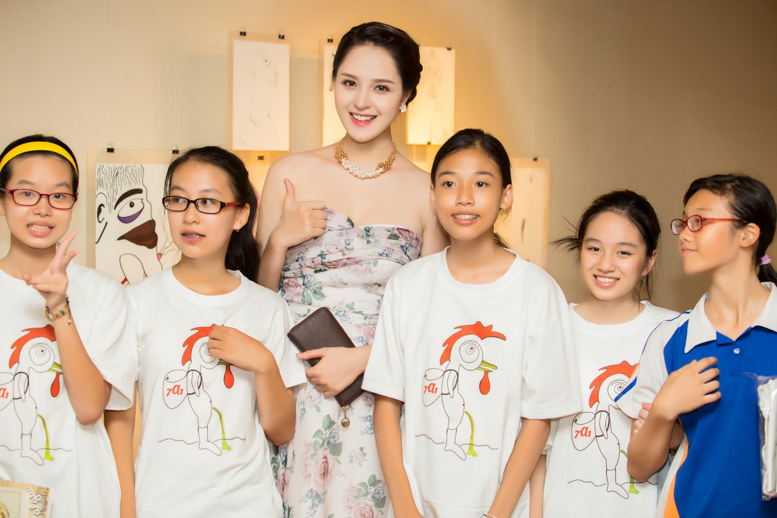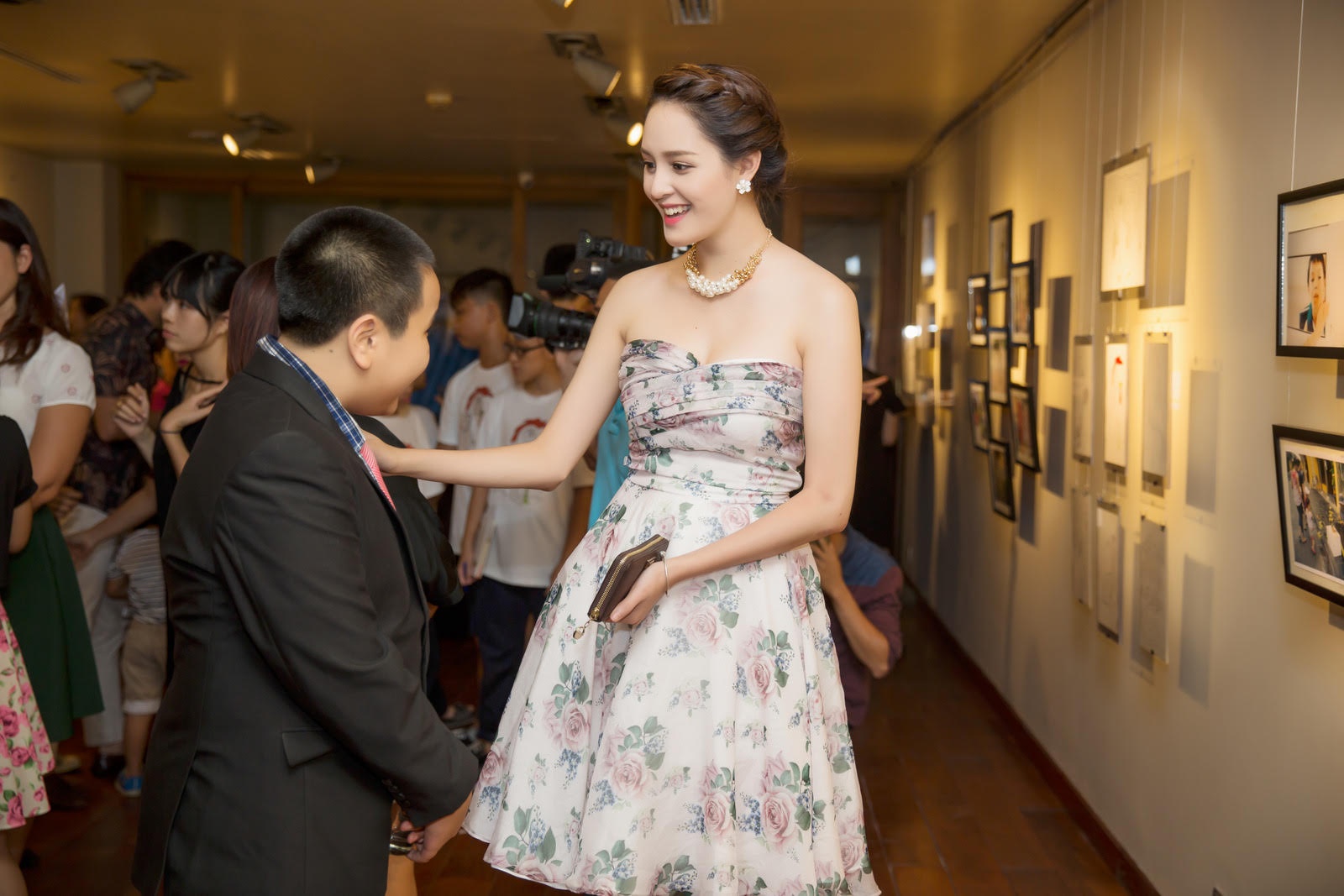 | Hoàng Anh vui vẻ chụp ảnh cùng những bạn nhỏ có mặt trong triển lãm Tôi có bạn. |