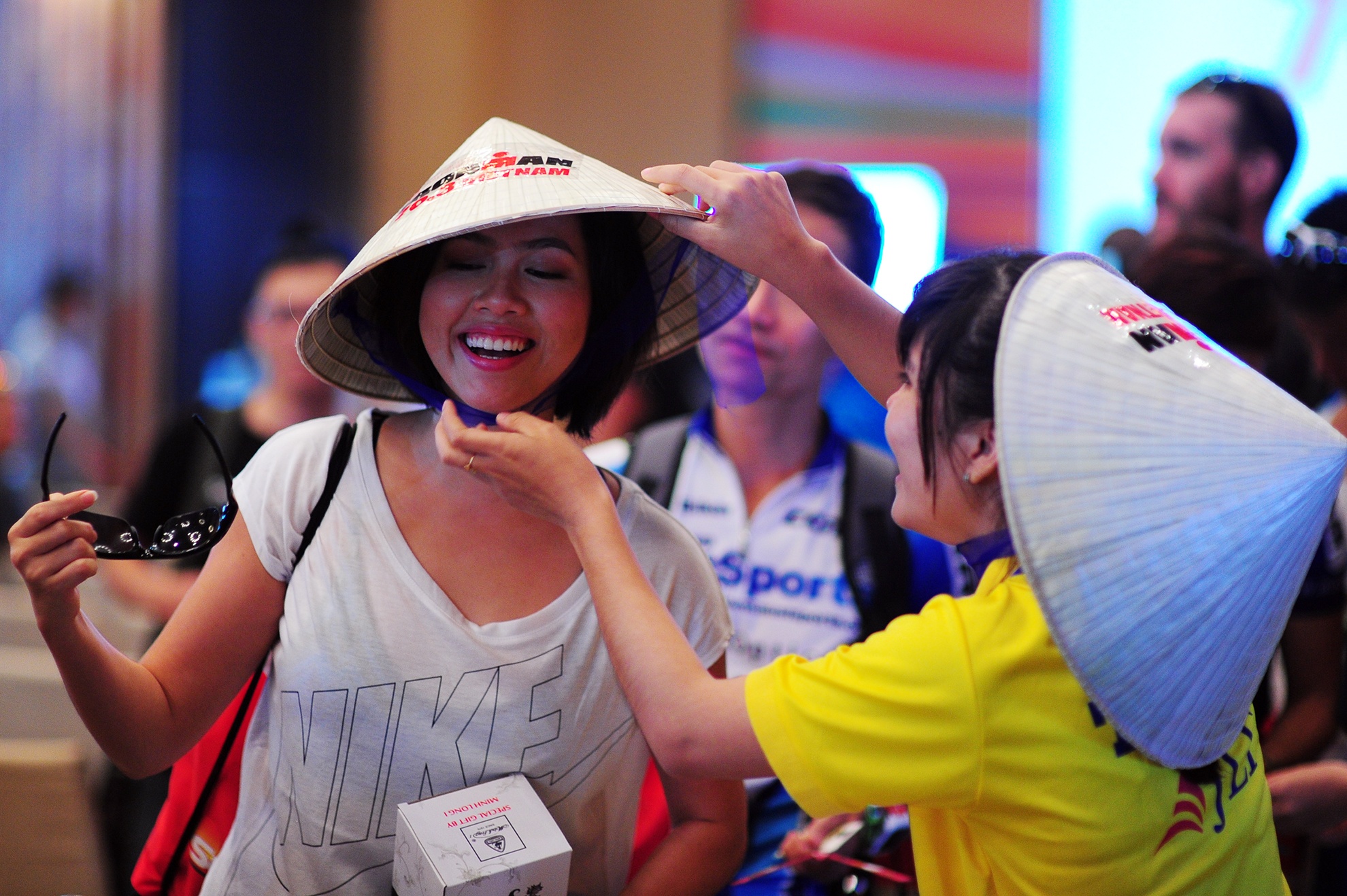 | Sau khi hoàn thành thủ tục đăng ký, cô được tặng chiếc nón kỷ niệm của ban tổ chức, một hình ảnh mang tính biểu tượng của đất nước con người Việt Nam. |