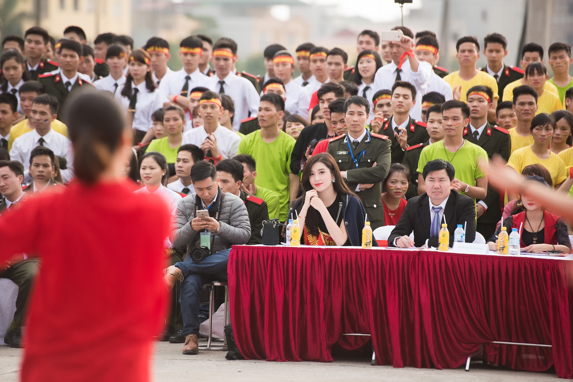 Cô không ngần ngại nói chuyện, chụp ảnh cùng các chiến sĩ, tham gia khuấy động không khí. |
