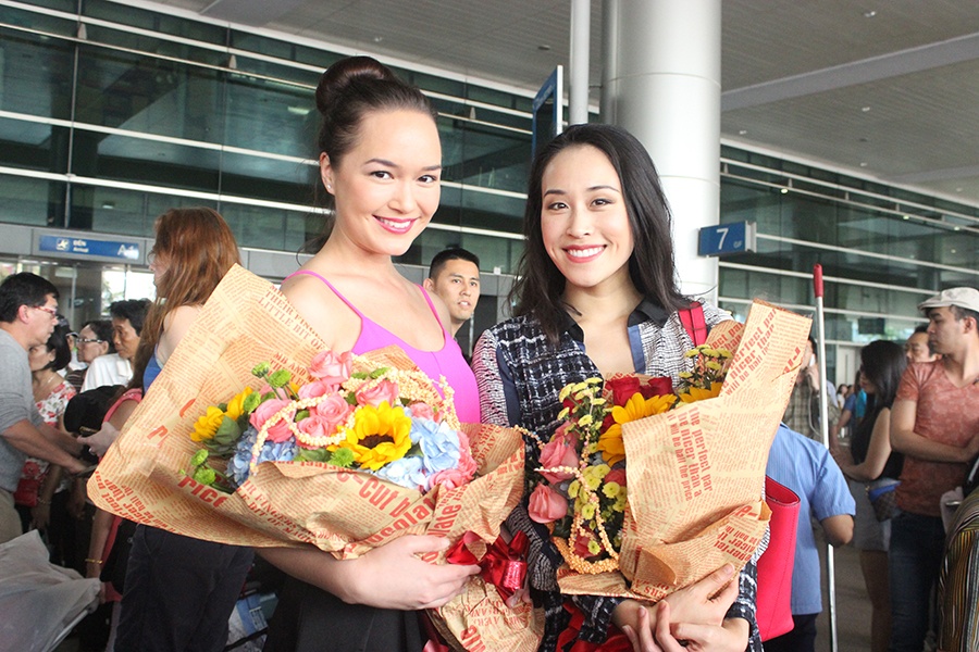 | Thúy Vy và á hậu Crystal Lee được tiếp đón chu đáo ở sân bay. Hai người đẹp diện trang phục đơn giản, tạo thiện cảm bằng vẻ tươi tắn, rạng rỡ, nụ cười luôn thường trực trên môi. |