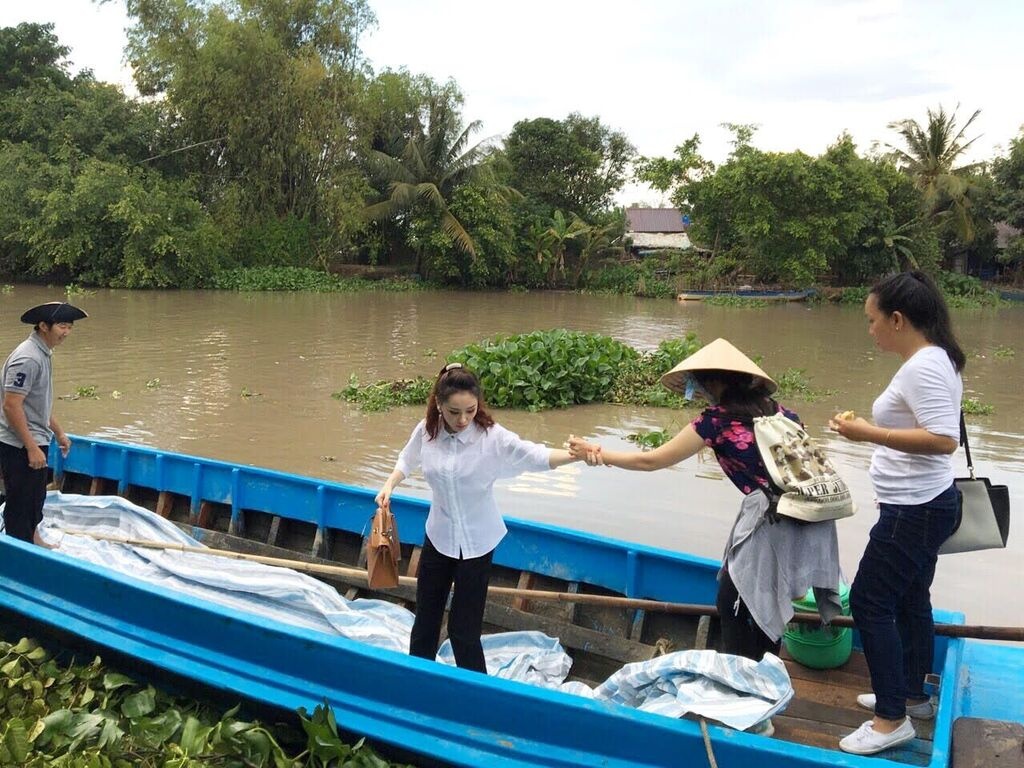 | Người đẹp đã đón ghe và đi đến tận những ấp nằm sâu trong xã để trao quà tặng dịp cuối năm. |
