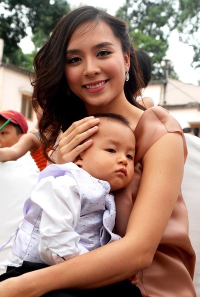 | Thiên Lý và con trai trong một lần dự sự kiện. Ảnh: Hoài Sơn. |
