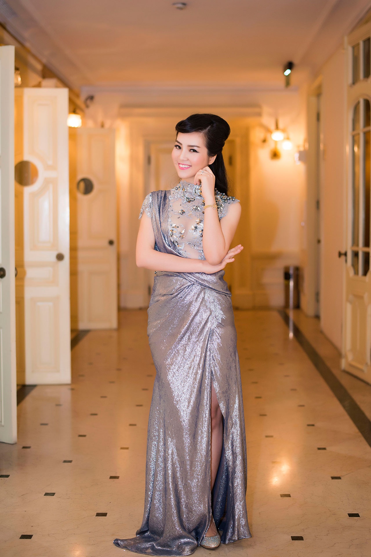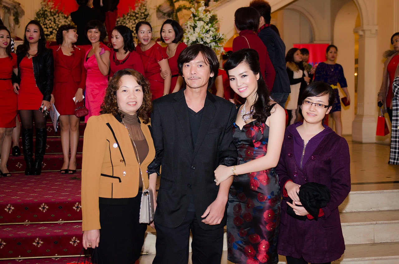 Á hậu Thụy Vân lần đầu đưa bố mẹ đi dự tiệc