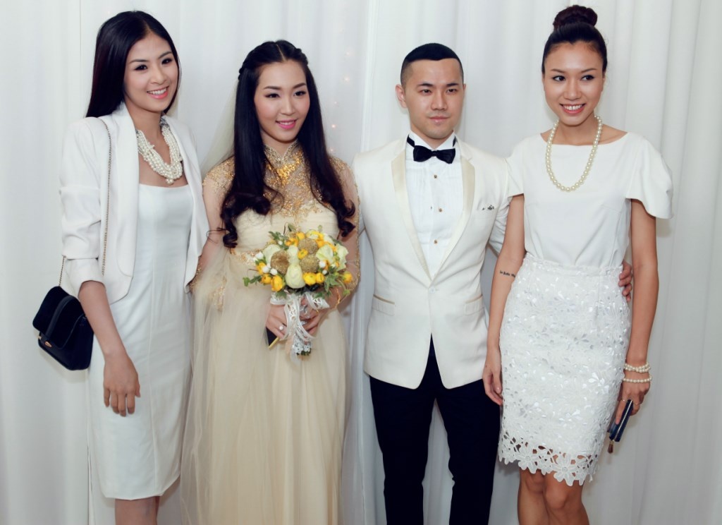 Hoa hậu Ngọc Hân cũng từ Sài Gòn ra Hà Nội dự đám cưới của Thùy Trang. Người mẫu Phước Hạnh cũng có mặt.
