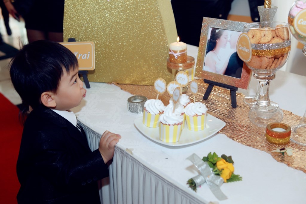 Một vị khách nhí say mê ngắm ảnh cưới của Thùy Trang.
