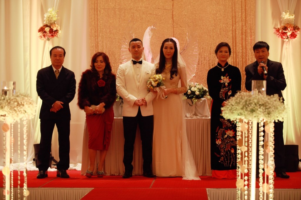 | Đám cưới của Thùy Trang được tổ chức tại một khách sạn hạng sang ở Hà Nội. Mọi thứ được trang trí đơn giản nhưng ấp áp, gần gũi. Á hậu chia sẻ ngày 29/12 tới, cô và chồng sẽ tổ chức thêm tiệc mừng đám cưới ở Sài Gòn. |