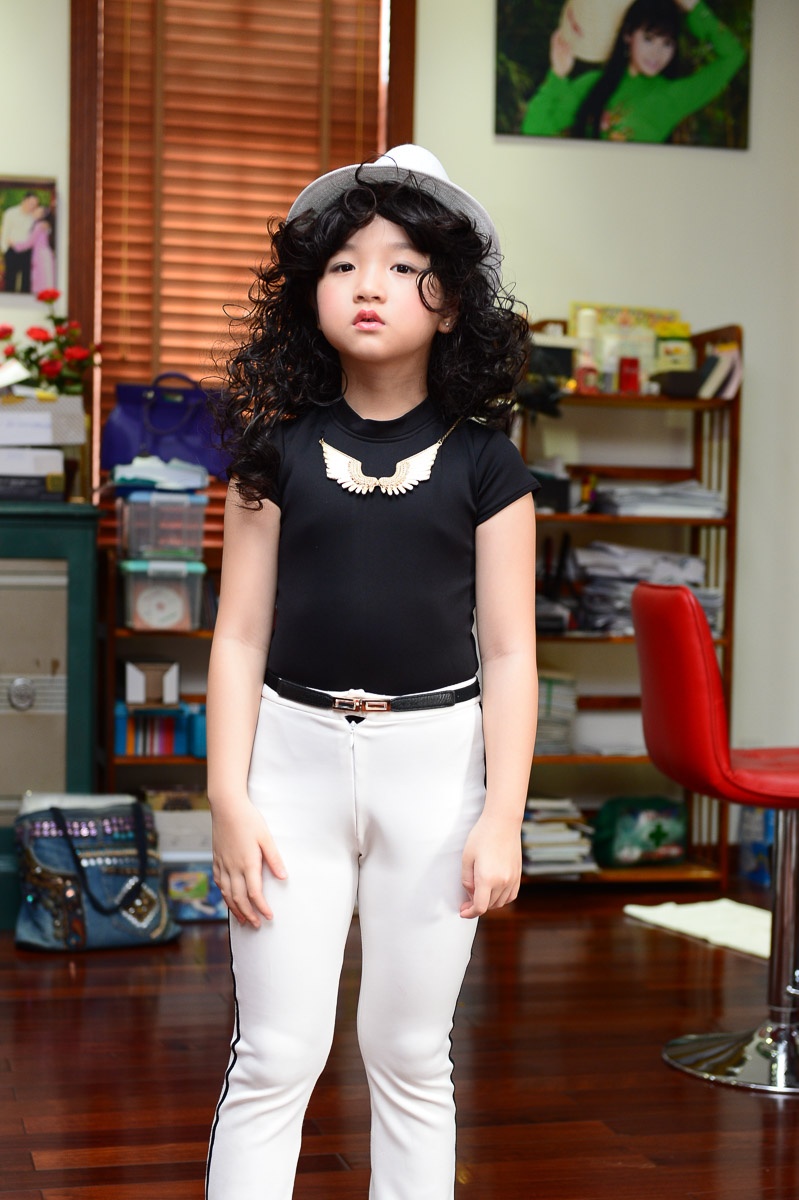 | Yêu thích "Ông hoàng nhạc pop" Michael Jackson nên Bích Ngọc được mẹ chọn trang phục cá tính để biểu diễn ca khúc Tôi thích. Cô bé năm nay 8 tuổi, bước vào lớp 3 và theo học tại một trường quốc tế gần nhà.