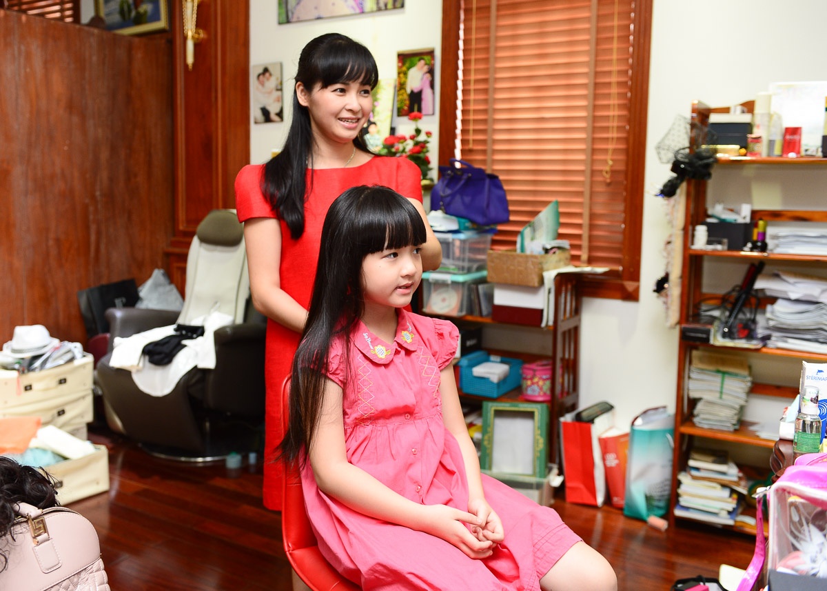 | Khác với vẻ tự tin trên sân khấu, Bích Ngọc ở nhà rất hiền lành và trầm tính. Hai mẹ con vừa chuẩn bị, vừa cười nói tíu tít. Trang Nhung cho biết, con gái rất tự giác. Dặn mẹ kêu dậy sớm nhưng 6h sáng, Bích Ngọc đã dậy vì háo hức được tựu trường. |