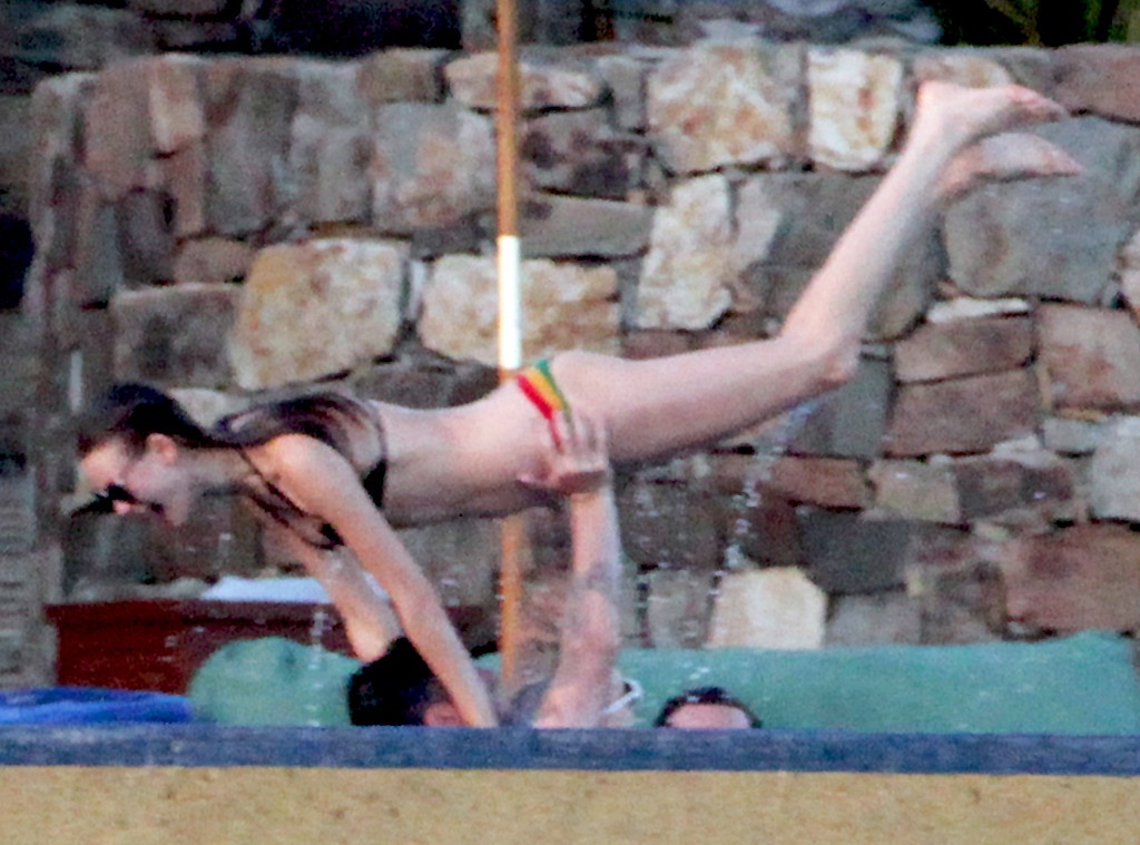 | Đôi uyên ương vui đùa trong bể bơi, tại đây Adam nhấc bổng Behati trong sự thích thú của cô bạn gái. Họ đang bắt chước cảnh quay nổi tiếng trong bộ phim lãng mạn kinh điển Dirty Dancing. Đính hôn vào tháng 7 năm ngoái, đôi vợ chồng sắp cưới luôn quấn quýt nhau. Tại Victoria’s Secret Fashion Show 2013, Adam có mặt để ủng hộ hôn thê. |