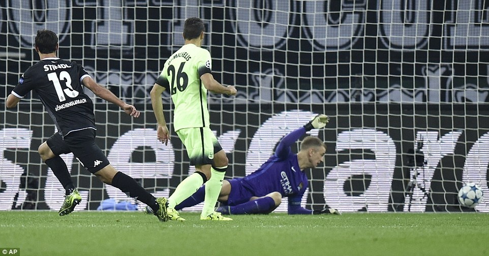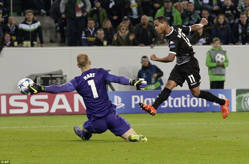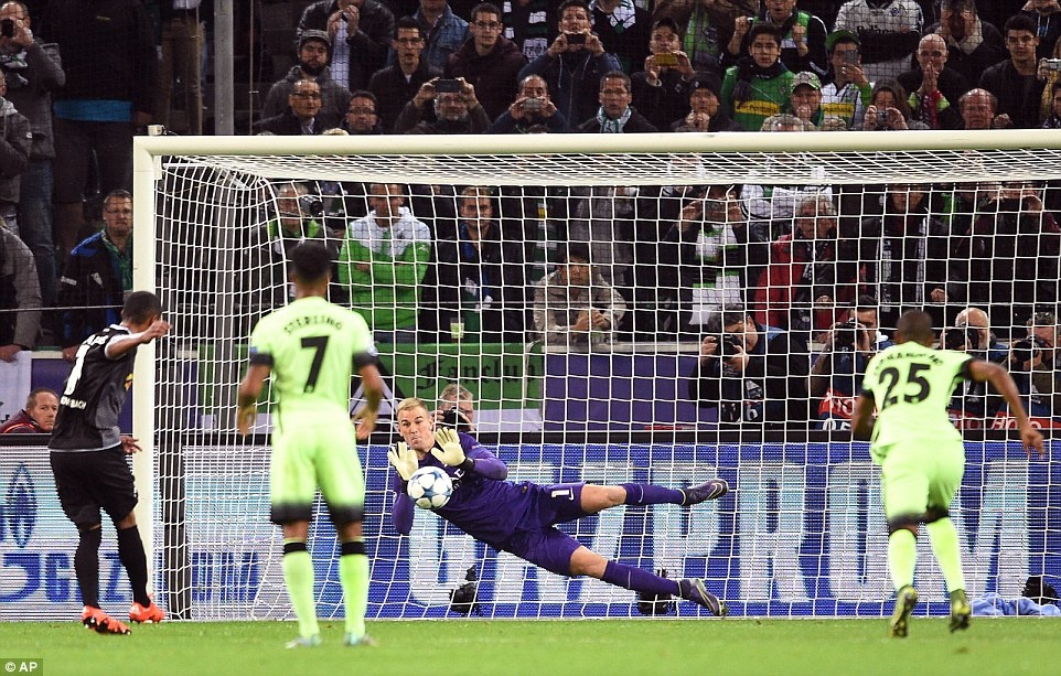 | Monchengladbach có cơ hội vươn lên trong hiệp 1 khi được hưởng quả penalty phút 20. Tuy nhiên, tiền đạo Raffael lại không thể đánh bại Joe Hart ở thế một chọi một. |