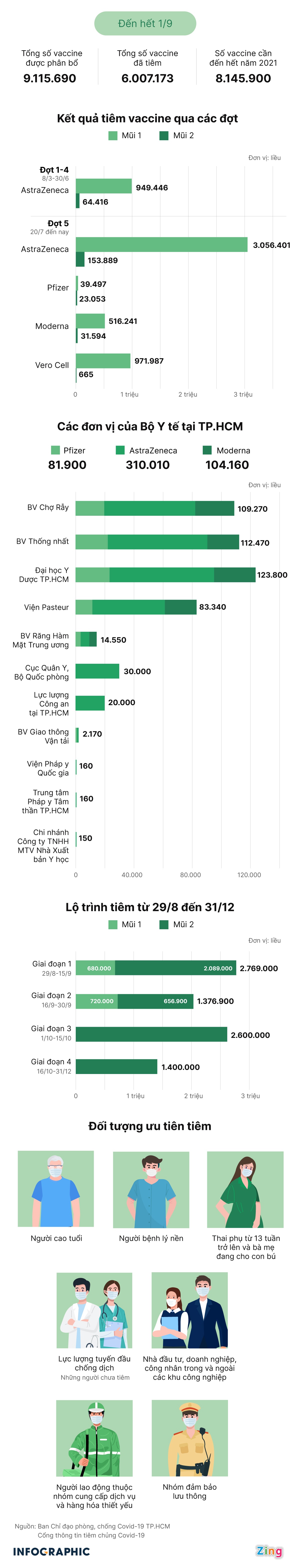TP.HCM đã xây dựng lộ trình tiêm vaccine Covid-19 đến cuối năm nay gồm 4 giai đoạn. Trong đó, số lượng vaccine cần sử dụng là hơn 8,1 triệu liều.