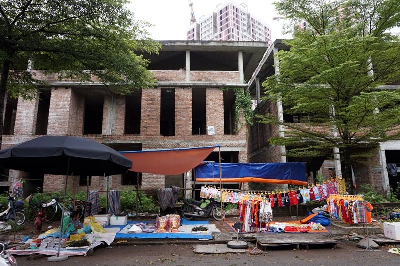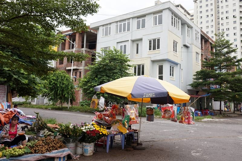 | Khu biệt thự liền kề bỏ không trở thành nơi họp chợ. |