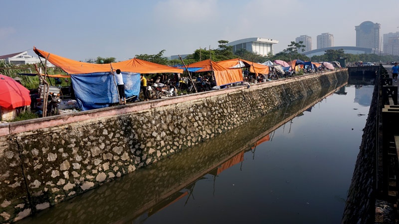 | Khu liên hợp Thể Thao Mỹ Đình tồn tại từ lâu một khu chợ với dãy lán nhếch nhác trải dài gần nửa cây số. |