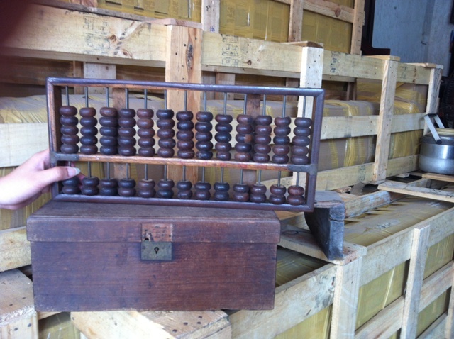 Long quả quyết: "Những con gỗ tiện để làm viên tính, khung bảng tính với những vít sắt rất đẹp như thế này, chắc chắn do chính người Tàu họ làm. Họ trả tôi vài chục triệu đồng, nhưng tôi không bán. Giữ lại thì mới còn, chứ nếu bán đi thì chẳng bao giờ tìm lại được".
