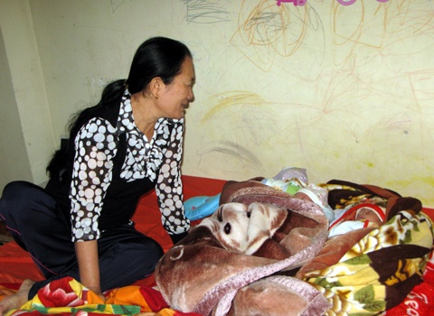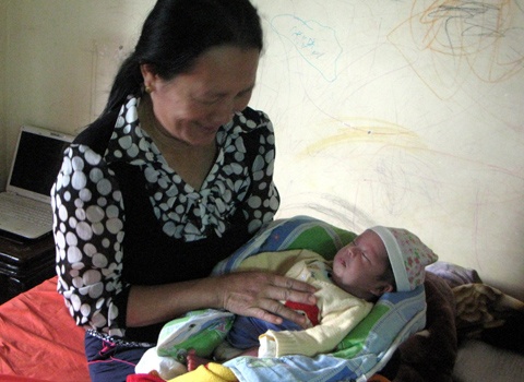 | Niềm hạnh phúc của mẹ đẻ chị D. khi bế đứa cháu ngoại trên tay. |