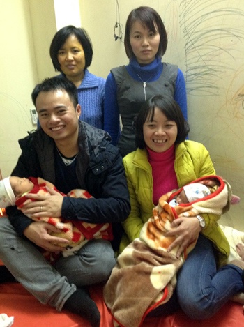| Niềm vui đón hai bé sinh đôi chào đời. Ảnh do bác sỹ Vệ cung cấp. |